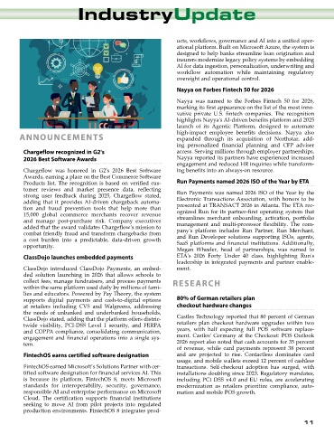 Products list. The recognition is based on verified cus- Run Payments named 2026 ISO of the Year by ETA