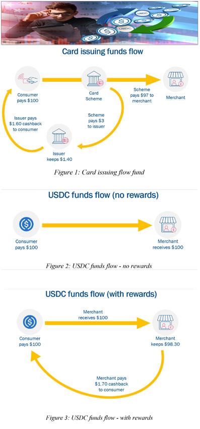 In the United States, merchants could offer 1.7 percent cashback on USDC payments, giving consumers more than they get from credit cards, while still retaining more for themselves than in card transactions.