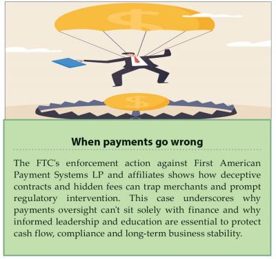 Thankfully, regulators stepped into action when they realized how these providers trapped merchants, and the FTC sued The First American Payment Systems LP (d/b/a Merimac Capital), along with affiliates Eliot Management Group LLC (d/b/a Sundance Payment Solutions) and Think Point Financial LLC (d/b/a Cypress Bay Solutions and Impulse Payments) in 2022.