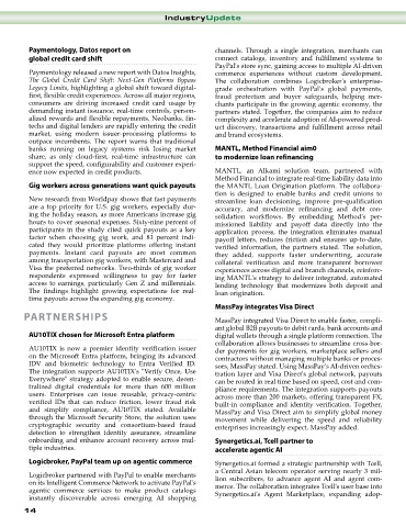 payments. Instant card payouts are most common they added, supports faster underwriting, accurate