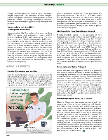 APPOINTMENTS Fiserv welcomes Walter Pritchard