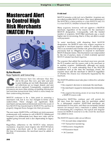 merchants and payment professionals need to be aware of by a subsequent acquirer. MATCHed merchants are