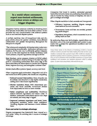 Handling disputes well becomes a brand differen- Napa Payments and Consulting