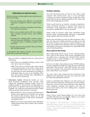 • Know your portfolio metrics: SIC mix, attrition What would an investor value more: merchants using