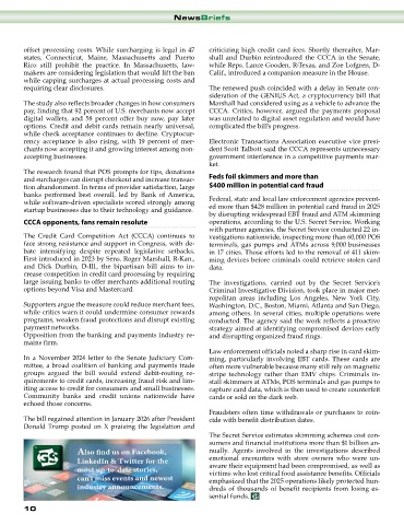 pay, finding that 92 percent of U.S. merchants now accept CCCA. Critics, however, argued the payments proposal