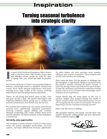 demands accelerating. Like winter weather, these forces The payments industry, like spring, rewards those who
