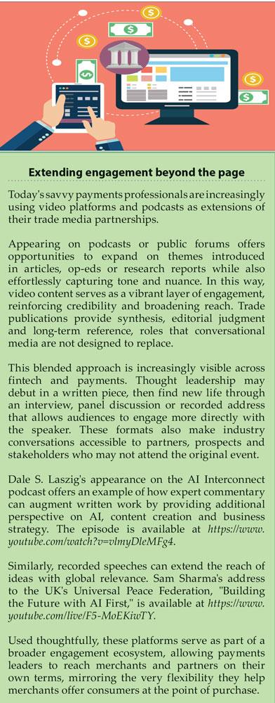 Dale S. Laszig, content strategy director at The Green Sheet and founder and CEO at DSL Direct, is a payments industry journalist, creator and consultant. Connect via email at dale@dsldirectllc.com and LinkedIn at www.linkedin.com/in/dalelaszig.